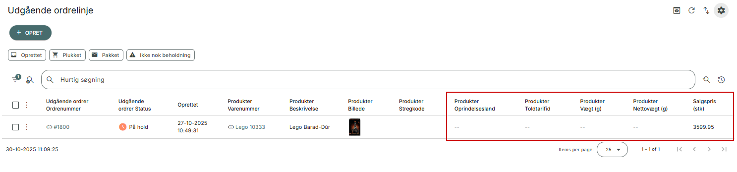 Hvis du sender ordrer til udlandet (udenfor EU), så kan du komme ud for, at der ikke kan hentes labels på ordren, fordi der mangler toldinformationer på én eller flere af ordrelinjerne.