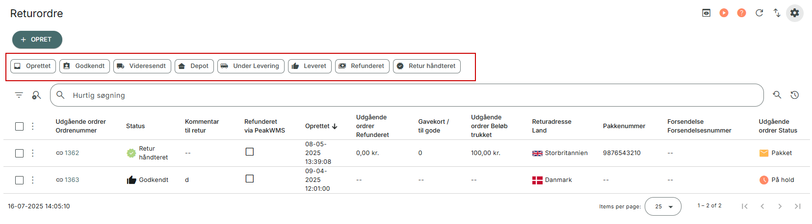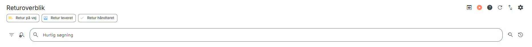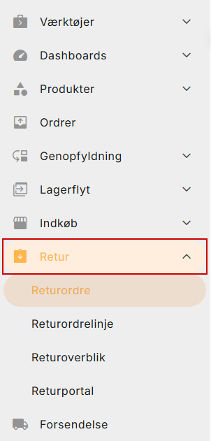 Under Retur i menuen til venstre i PeakWMS, har du adgang til overblik over alle dine returordrer og returordrelinjer. I dialogerne i menupunktet kan du skabe overblik over, hvilke returordrer, der er håndteret, hvilke der er registreret men endnu ikke håndteret, og du kan lave søgninger på specifikke produkter.
