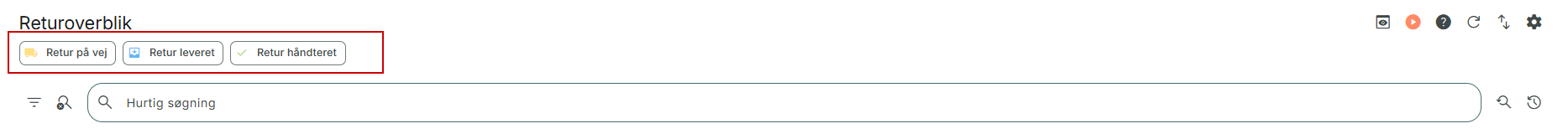 Øverst i dialogen finder du en række filtreringer, der kan hjælpe dig til hurtigt at søge returordrer frem i en bestemt status.