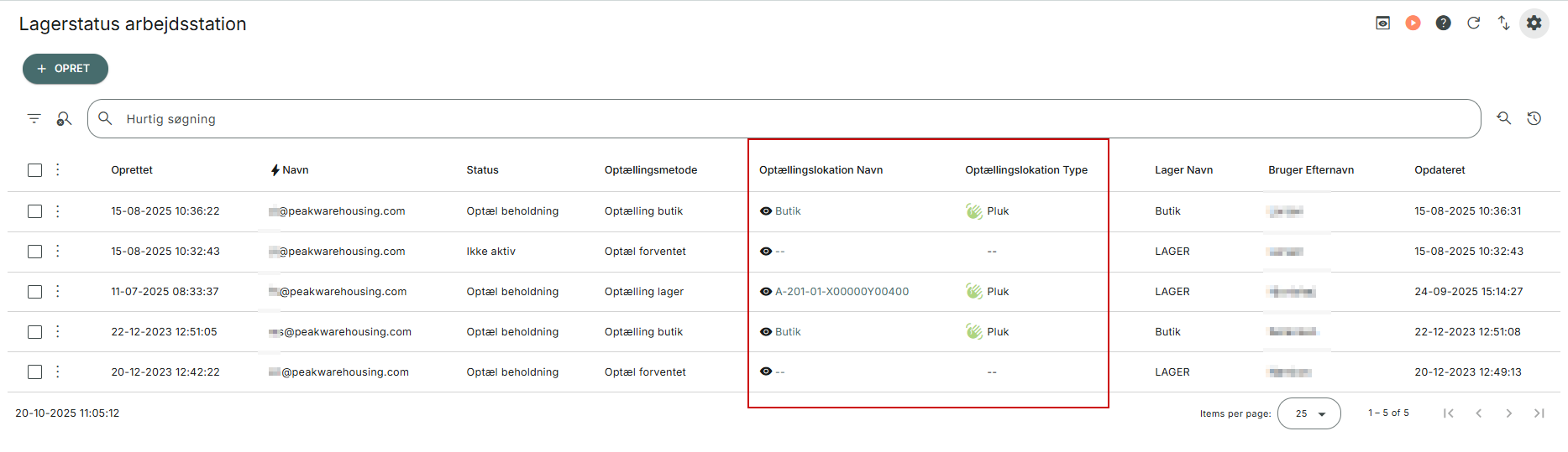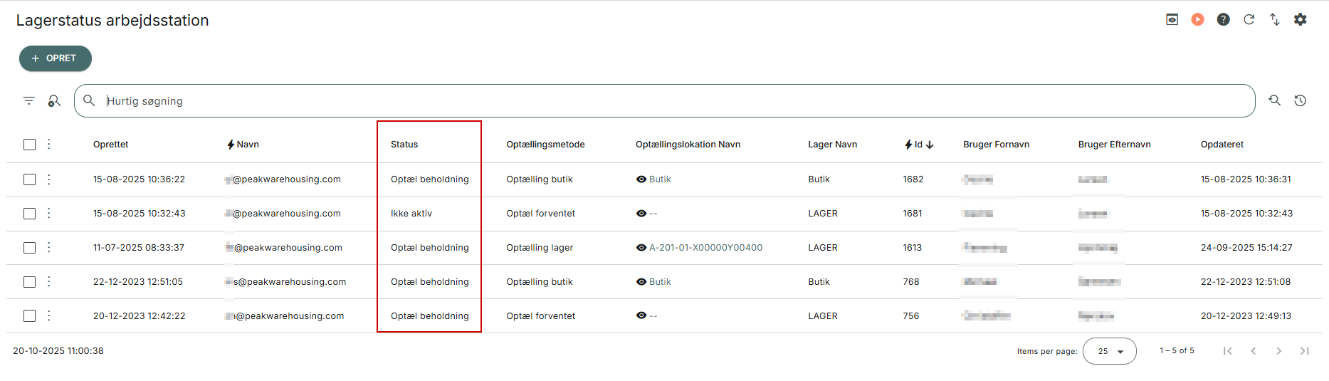 Når du bruger Værktøjer > Lagerstatus i PeakWMS, oprettes der automatisk en lagerstatus arbejdsstation på din bruger.
