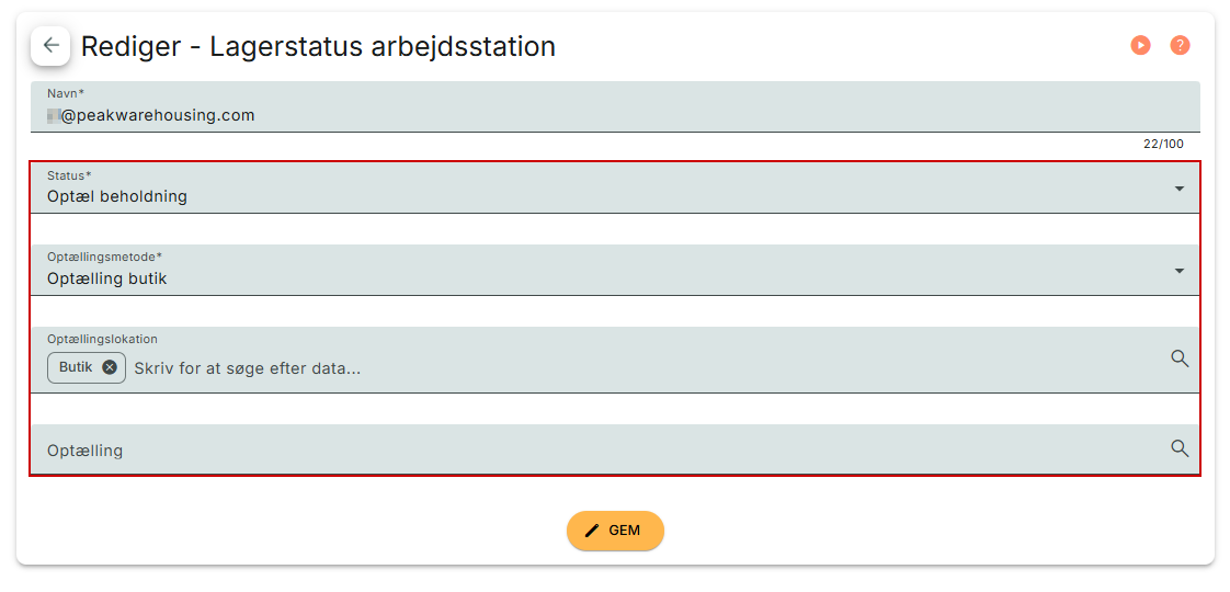I dialogen Lagerstatus arbejdsstation, har du mulighed for at redigere dine arbejdsstationer.