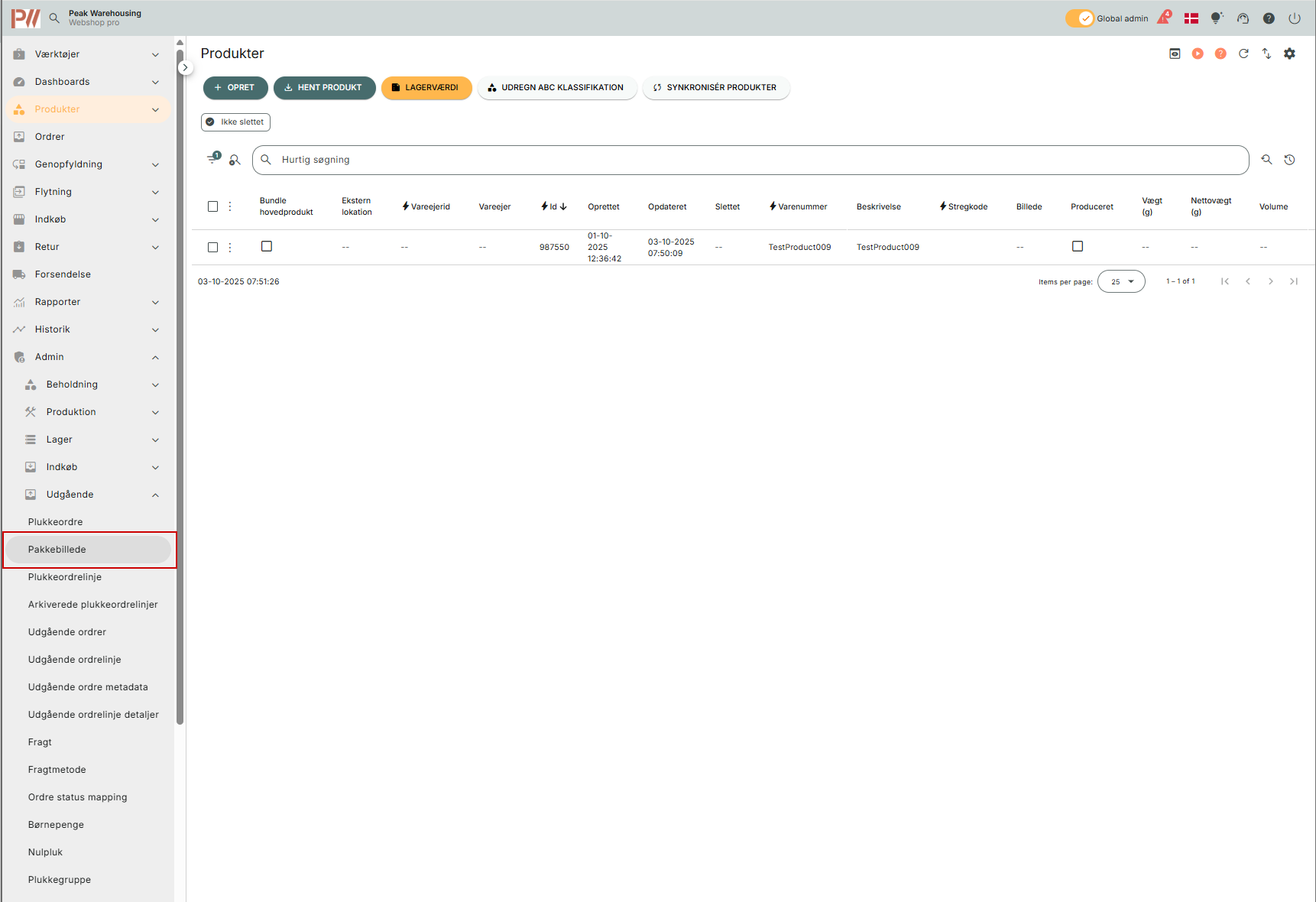 I PeakWMS har du mulighed for at angive et Pakkebillede. Pakkebilledet kan f.eks. bruges ifm. forskellige typer pakketape, hvis du bruger tape med forskellig tekst, alt efter hvilket land der sendes til, eller hvilken webshop en ordre kommer fra.