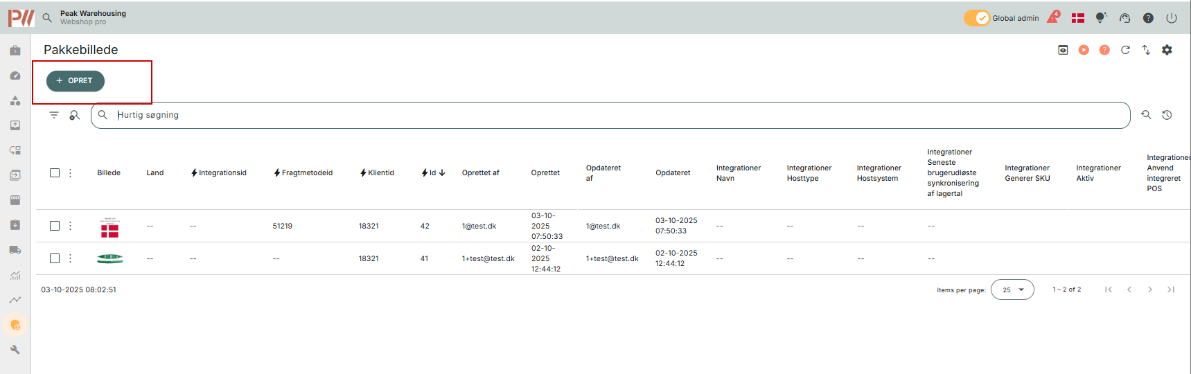 Du kan oprette så mange pakkebilleder du vil. Billedet du tilføjer, skal indsættes som URL. Du opretter et pakkebillede ved at klikke på "Opret".