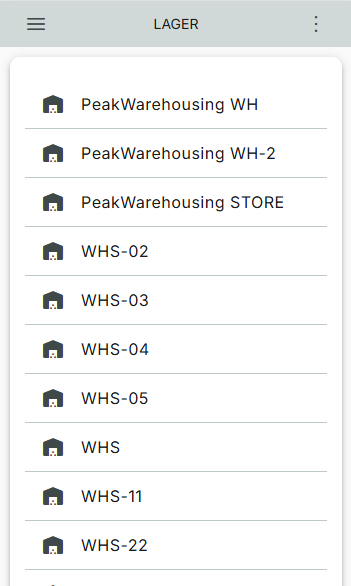 Her starter du med at vælge det lager, du vil oprette en fast plukkelokation på. Har du valgt lager i en anden proces i Peak efter du loggede ind, vælges dette lager automatisk.