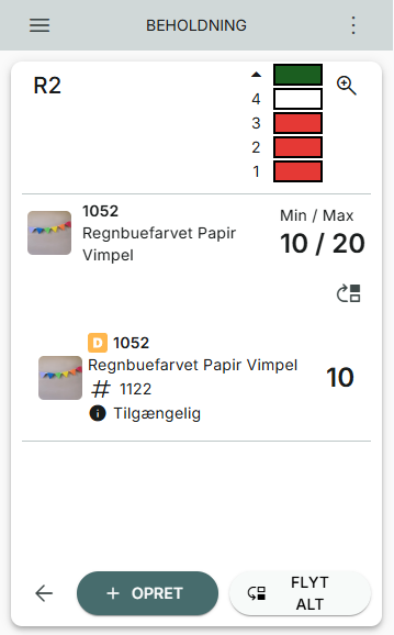 Hvis der er registreret en fast plukkelokation, og der er registreret beholdning på lokationen, vil du kunne se min/max-opsætningen og beholdningen, der er registeret på lokationen.