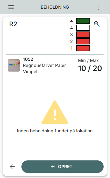 Vil du oprette beholdning på produktet, der er tildelt til lokationen vises lokationen som hvid. CDen hvide farve indikerer, at lokationen er tom og kan benyttes til beholdning for det pågældende produkt.