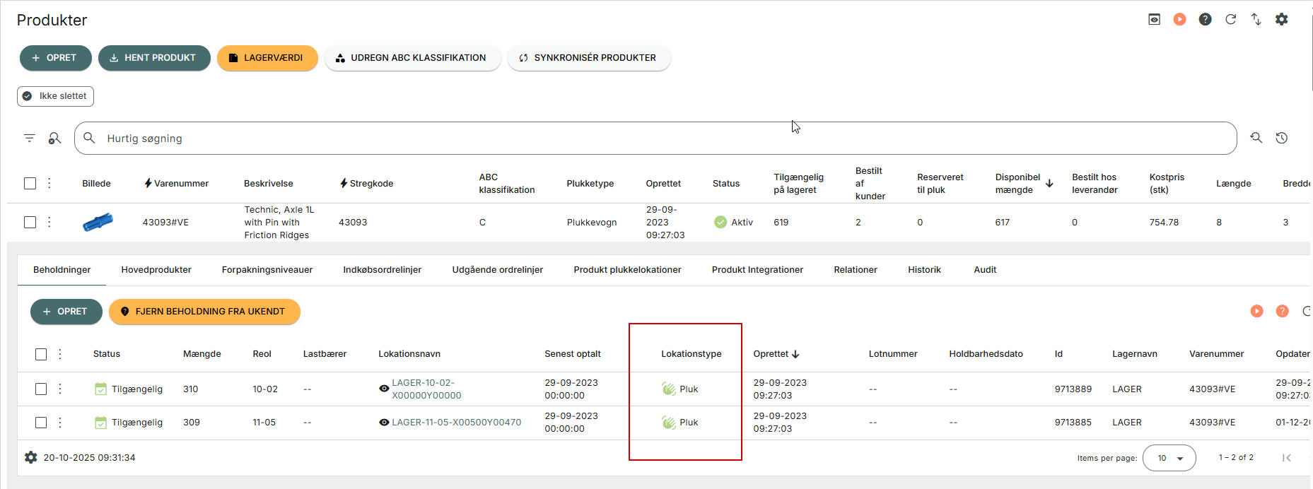 Beholdninger, der ligger på en lokation af typen "Pluk", vil være mulig at reservere varer og plukke fra i din plukkeproces. Beholdning, der ligger på plukkelokationer oprettes som tilgængelig beholdning, der gør det muligt for PeakWMS at bruge beholdningerne på plukkelokationerne til de ordrer, der skal frigives og sendes afsted.