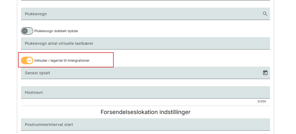 Du skal aktivt angive, om lokationen skal medregne beholdningen på lokationen til salg på webshoppen eller ej. Skal beholdningen ikke indgå på webshoppen, skal du sørge for at sætte følgende flueben: