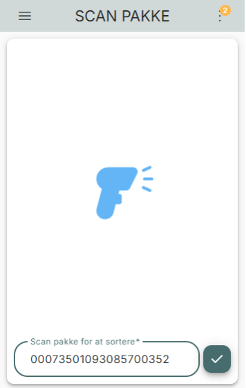 Når funktionen er slået til, vil det være muligt for dig at bruge værktøjet "Pakkesortering", hvor du scanner en ordre, for at se, hvilken forsendelseslokation pakken skal ligge på.