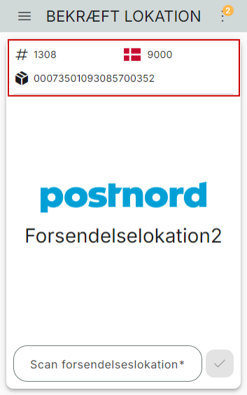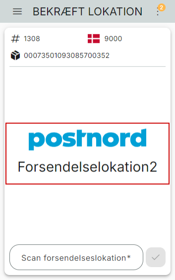 For at afslutte flowet, skal du scanne forsendelseslokationen, for at registrere pakken på lokationen.