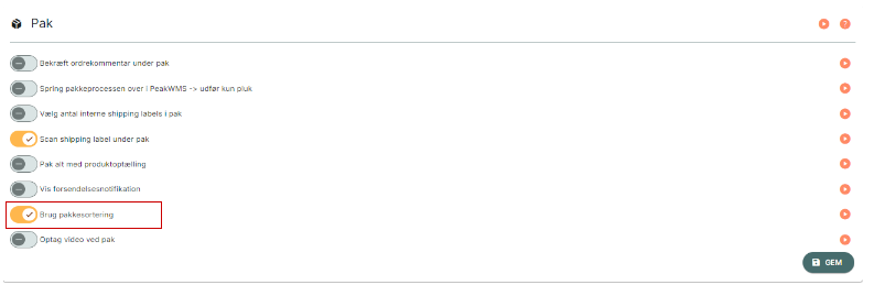 Når funktionen er slået til, skal du sørge for at scanne alle dine ordrer i flowet Pakkesortering. Du finder flowet under Værktøjer > Pakkesortering.