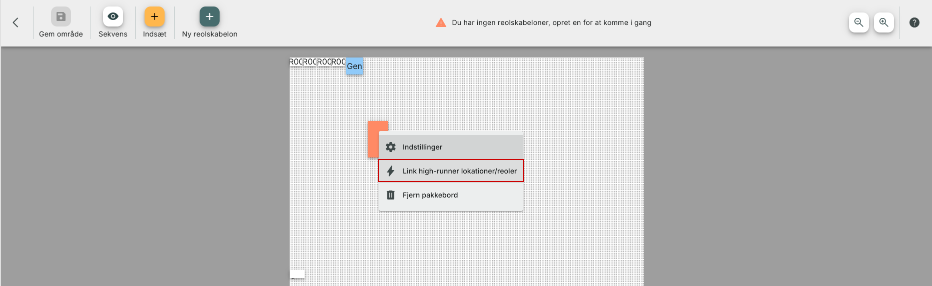 Du skal sørge for at oprette pakkebordet i det område, som de reoler/lokationer der skal linkes til pakkeordet er i.