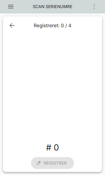 Her vil du blive ført over på en ny skærm, hvor der skal indtastes/scannes serienummer. Der er løbende validering af de indtastede/scannede serienumre, ligesom i varemodtagelsesprocessen og pak.