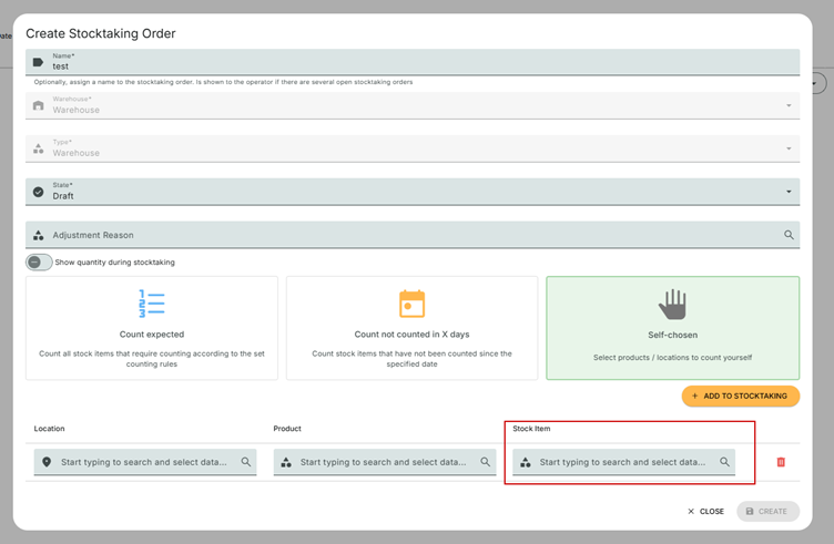 It is now possible to create a stocktaking order line based on a specific stock item. When creating a stocktaking order, an extra field has been added when you add a line. Here the user can select a specific stock item that the stocktaking order line should be based on.