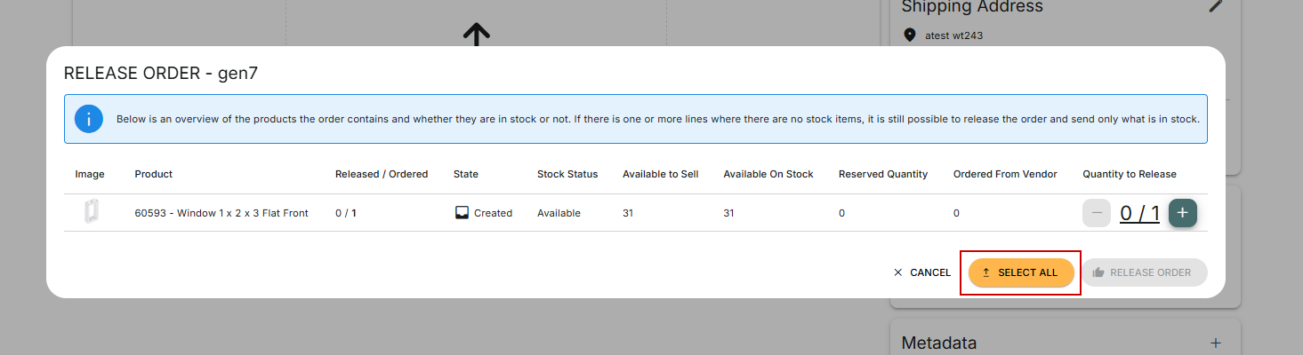 “Select All” adjusts all available products to max, so you can easily release all available lines, without having to adjust each line manually.