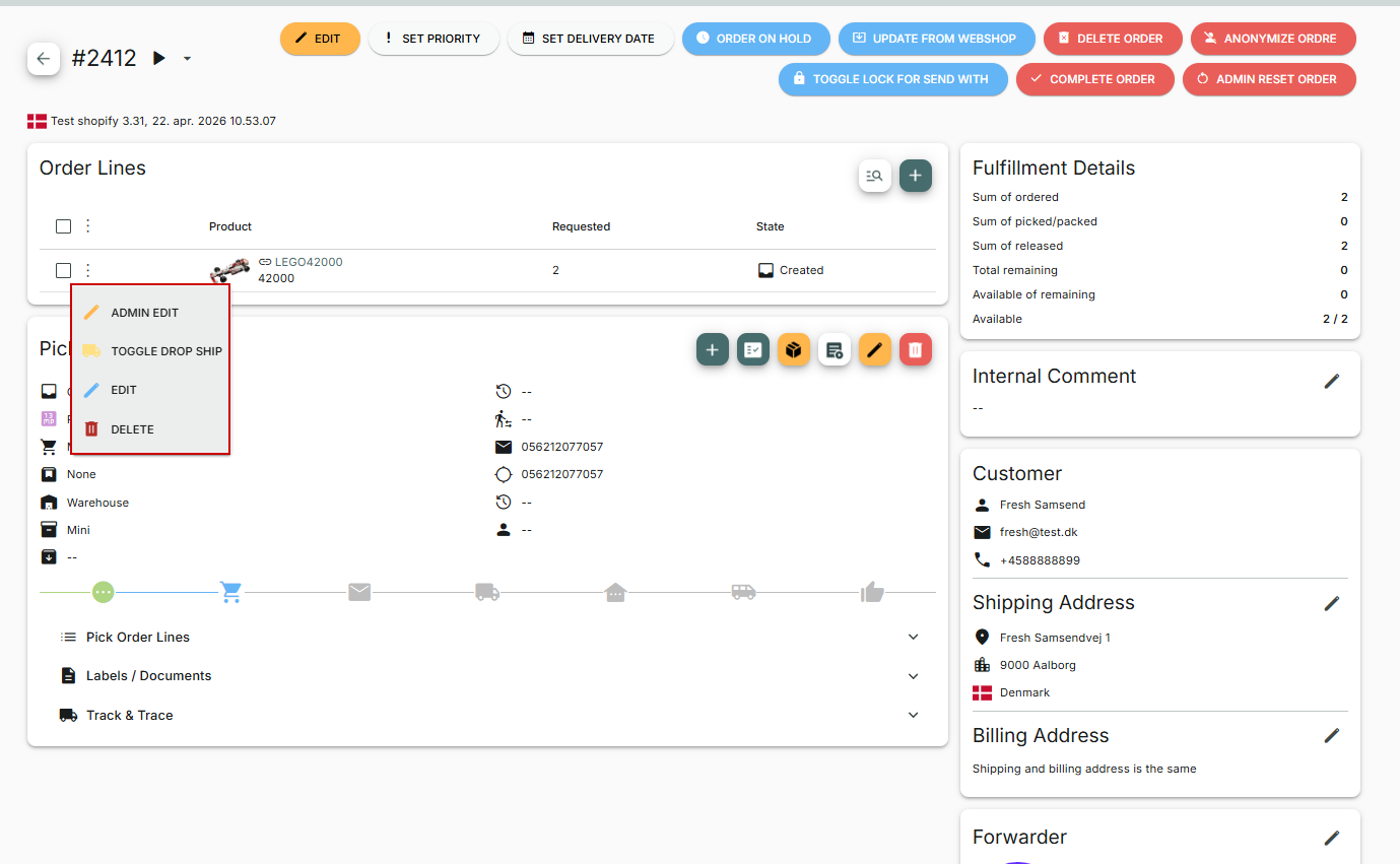 It has been made easier and safer to edit outbound order lines directly in PeakWMS. Users now have access to a simplified “Edit” function containing only fields that do not require manual cleanup, while advanced editing has been moved to a separate admin function so that not all employees have access to edit these fields.