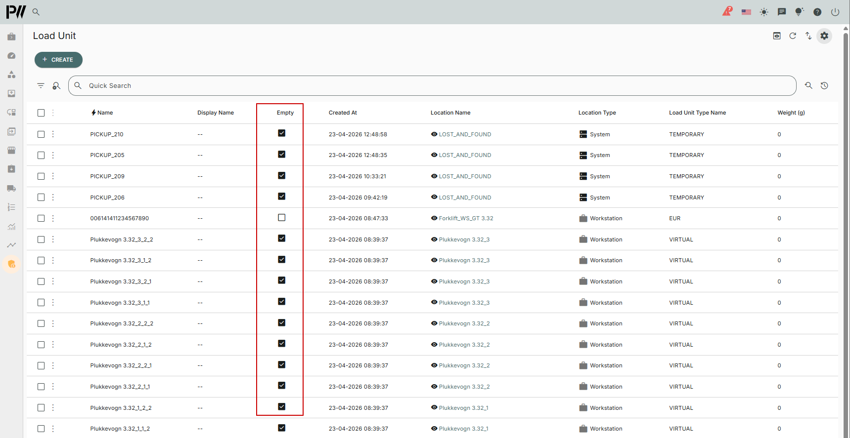 Existing data is automatically migrated: any load units currently in Lost and Found with an active warehouse transfer are moved to the new location. This makes it easier to distinguish between unused load units and those involved in an active transfer.